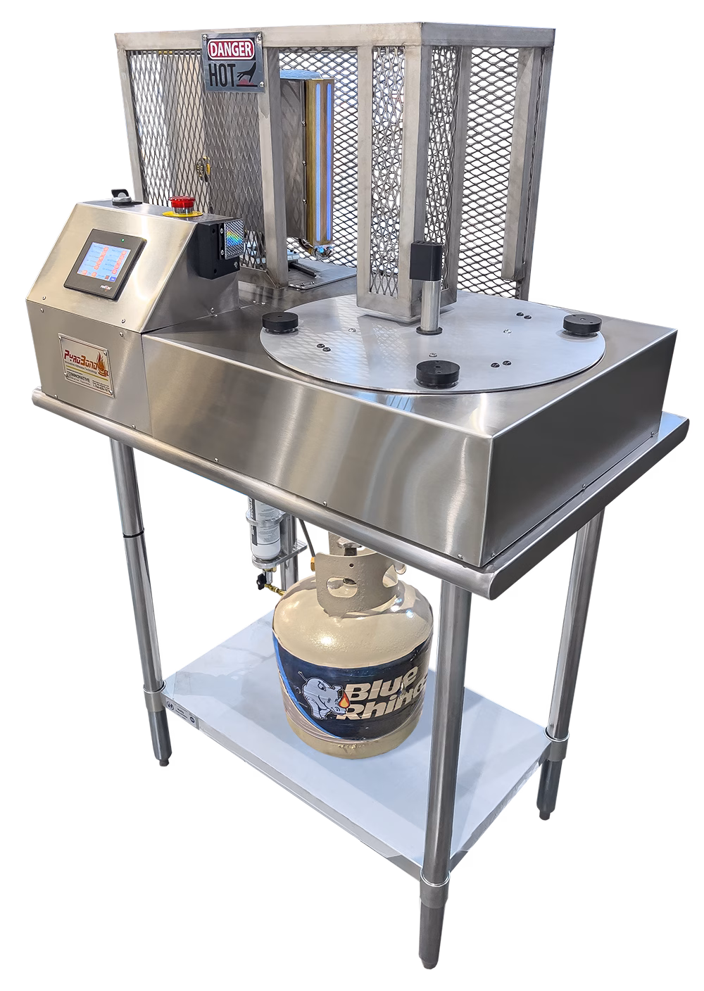 Optimize adhesion with our Pyrosil and flame treatment system. Designed for drinkware and other cylindrical objects.